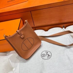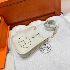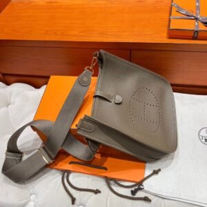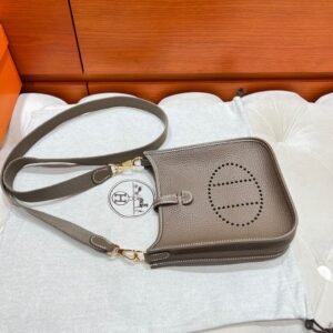 The HERMΓS Mini Evelyne 17CM in CK18 Etoupe is a chic, compact version of the iconic Evelyne bag, designed for effortless sophistication and everyday wear. Crafted from TC Leather, known for its lightweight and durable nature, this bag boasts a refined texture that enhances its luxurious appeal. The CK18 Etoupe color, a sophisticated taupe with subtle undertones, is versatile enough to pair with any outfit while offering a timeless, neutral hue.