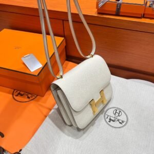 This exquisite OM Chai Constance 19CM is crafted from Epsom Leather, known for its lightweight, structured form, and excellent durability. The luxurious Gold Hardware enhances its sophisticated appeal, making it a timeless addition to any collection. With full handmade craftsmanship, this bag showcases impeccable artistry and premium materials. Its compact design and elegant finish make it the perfect accessory for both casual and formal occasions.