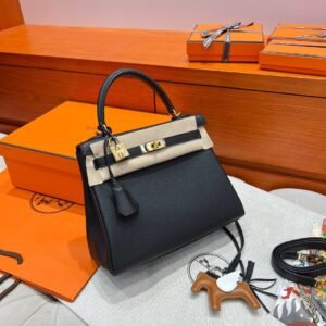 CK89 Black Kelly 25CM Togo Leather Gold Hardware Full Handmade