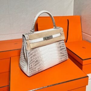 01 Himalanay Kelly 28CM Crocodile Leather Silver Hardware Full Handmade