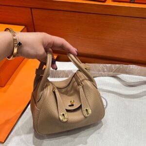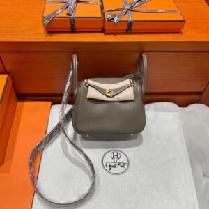 18 Etoupe Mini Lindy 19CM Tc Leather Gold Hardware Full Handmade