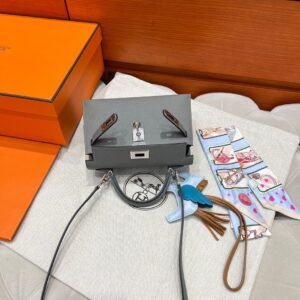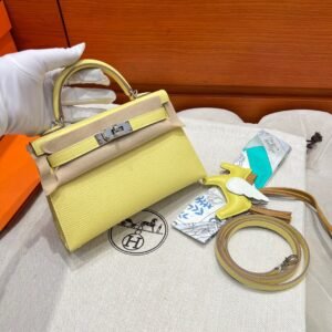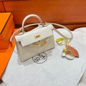 CK37 Gold Mini Kelly Chamois / Chever / Swift Leather Bag Silver Hardware Full Handmade