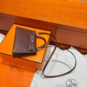 41 Havana/Etrusque Mini Kelly 19CM Chever Leather Silver Hardware Full Handmade