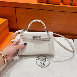 1Z Jayne Poussin Mini Kelly 19CM Epsom Leather Silver Hardware Full Handmade